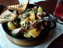 Более того в меню около большинства позиций было расписано по граммам вес основного блюда и гарнира. Рядом со « сковородой с говядиной» было просто указано 450 грамм. Видимо никто не будет заказывать это блюдо, если узнает, что 80 % сковороды заполняет сухой картофель «по домашнему»