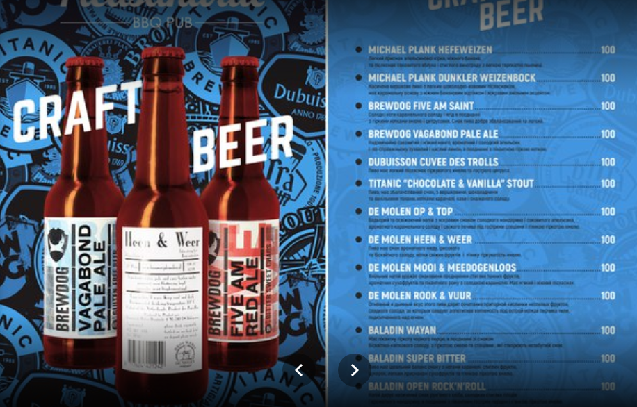 В меню бургери і закуски до пива. Кухня посередня, але є сезонні страви. З лютого вже не можна резервуари столики.