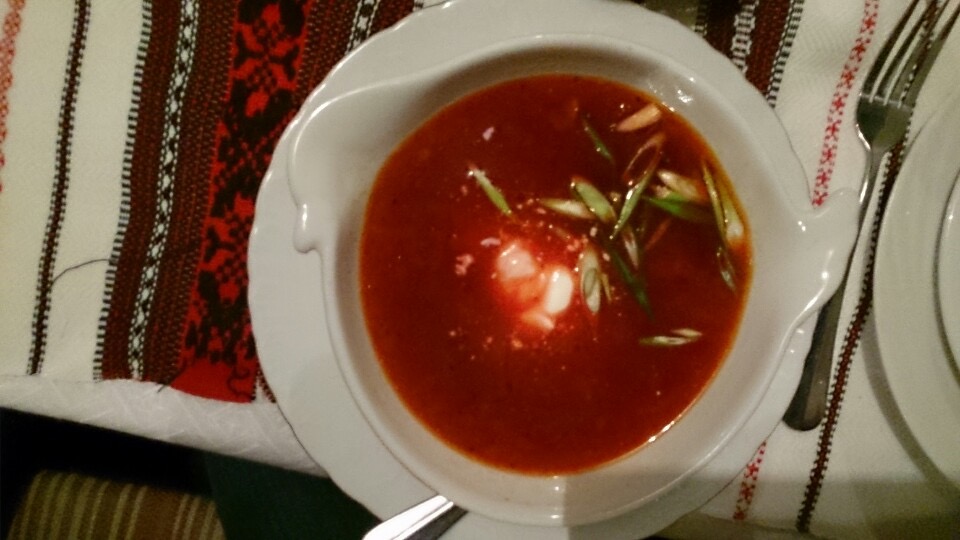 Я борщ люблю... Жінка любить Ваш яблучний пиріг, національна тематика також до смаку. Єдиний мінус то огірки на гирлі в складі овочей на гирлі замість цукіні або кабачків... А взагалі чудове місце!